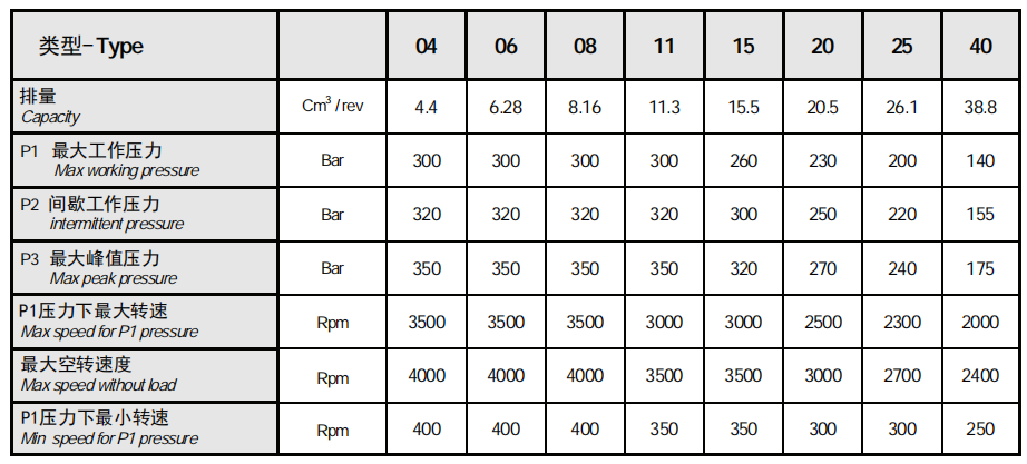 - 容量范圍廣:4-6-8-11-15-20-25-40 cm 3 /rev。
